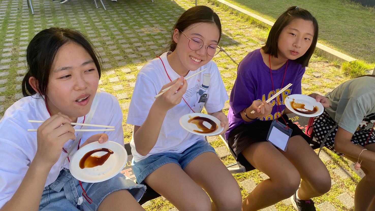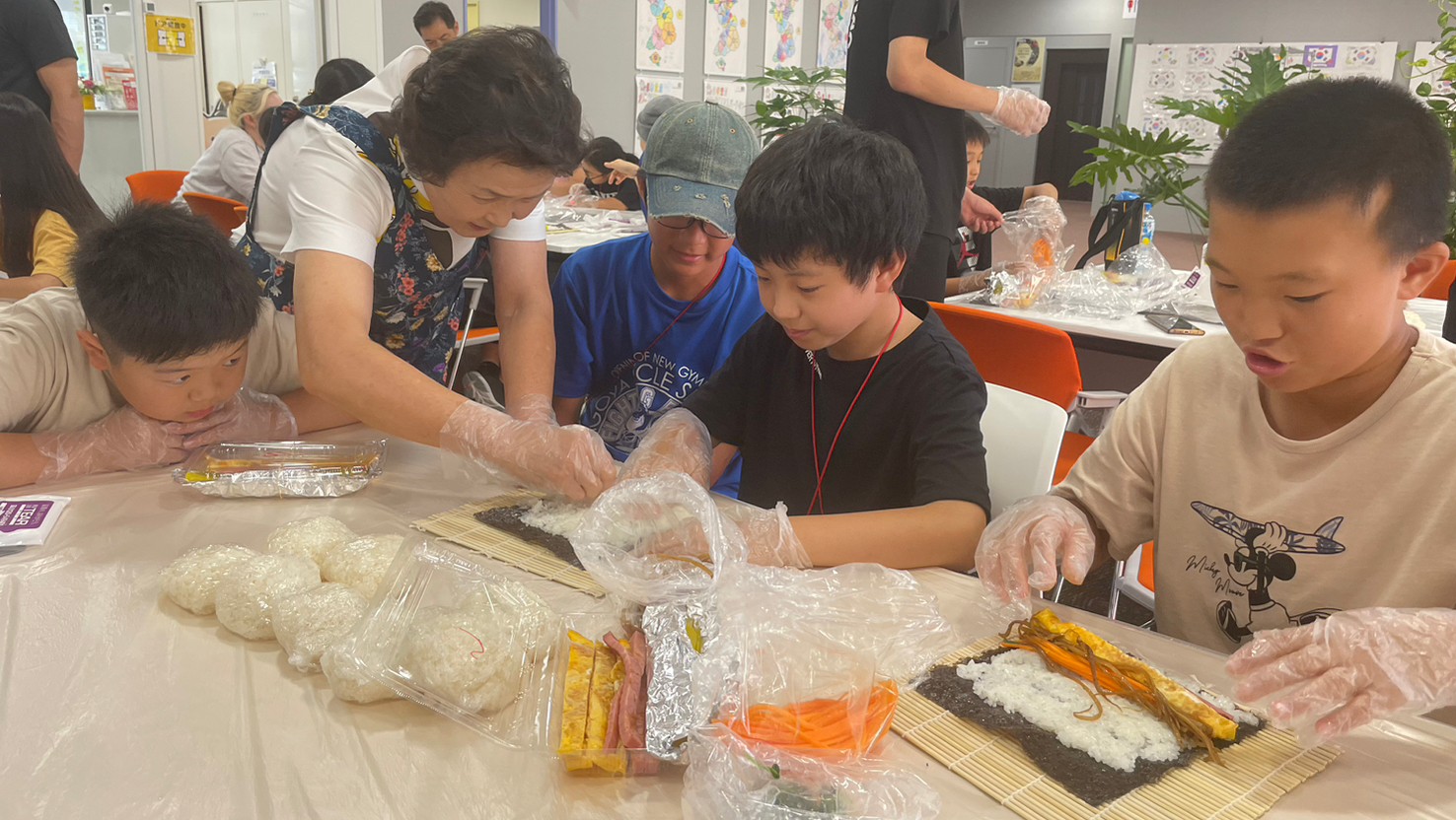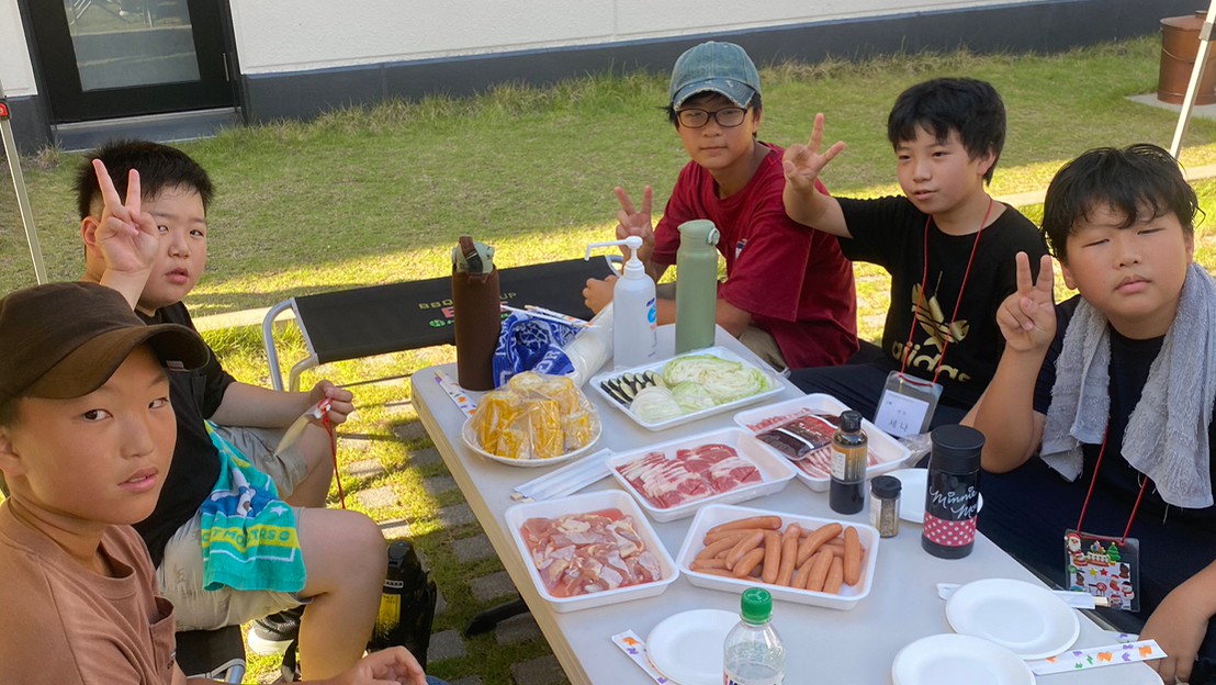 二日目は留学生会が中心となって、韓国語を遊びながら学ぶ学習会を行い、近隣の施設でプラネタリウム見学を行いました。昼食はキンパ作りに挑戦、精一杯作った自分たちのキンパを、また県本部の李玉順副団長からのスープ、チヂミ、キムチの差し入れを楽しみました。最後のイベントは「ウォーターまつり」、各自で水鉄砲を持って仲間と掛け合い、オリニたちはずぶ濡れになって遊びました。