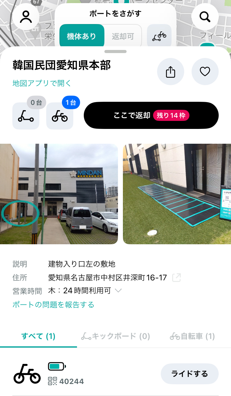 愛知韓国人会館の南側・人口芝スペースでは「LUUP(るーぷ)」へのポート貸出運営を行っております。