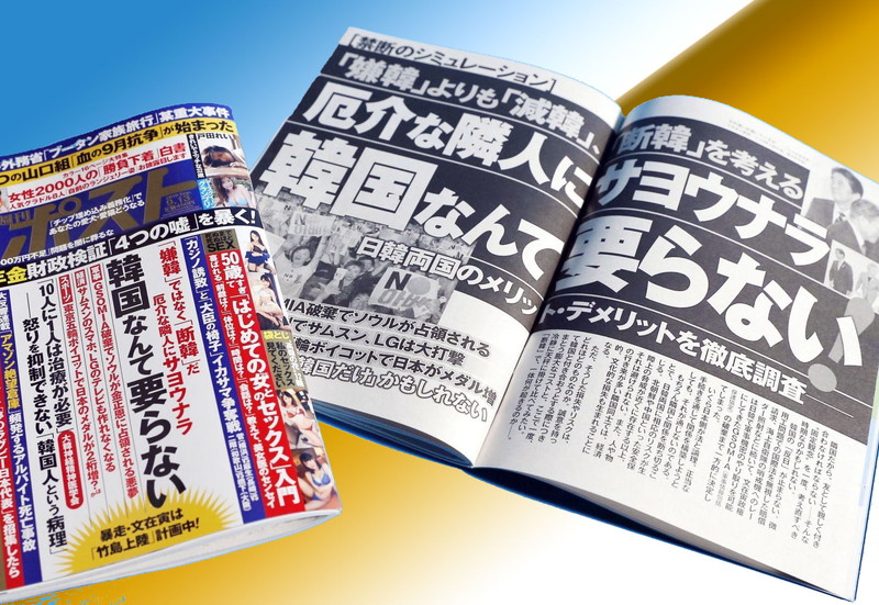 주간 포스트 9월 13일호에서는 "감한(減韓)、단한(断韓)을 생각하다" , "귀찮은 이웃에 작별을 고한다" , "한국은 필요 없다" 라는 극단적인 제목을 나열한 특집 기사를 게재했다. 小学館에 관련되어 있는 작가 등으로부터는 “차별을 선동하고 있어, 간과할 수 없다” , "앞으로는 小学館과는 일을 하지 않겠다" 는 등의 비판과 반발이 이어졌다.