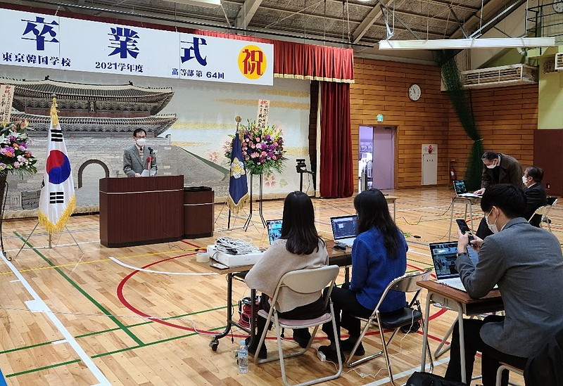 동경한국학교(이사장 오공태, 교장 정회택)는 2월5일, 제64회 고등부 졸업식을 온라인으로 치뤘다. 신종 코로나바이러스 감염증 확산으로 졸업생 107명은 자택에서 대기. 졸업식은 유튜브 라이브로 전송됐다.
