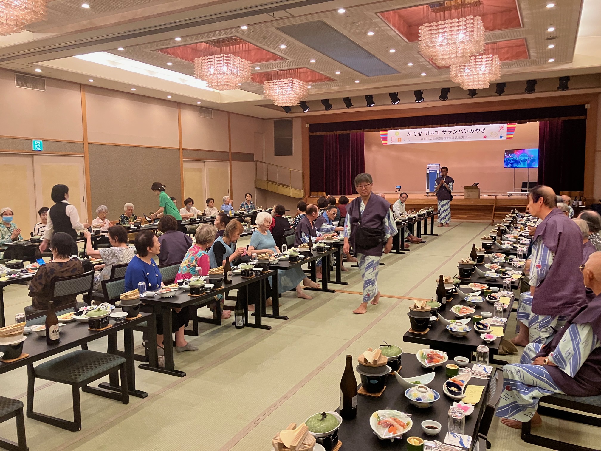 2023年7月3日から5日まで、移動サランバンみやぎで45名の70歳以上の団員様と李団長を含む役員関係者10名でホテル観洋で開催しました。