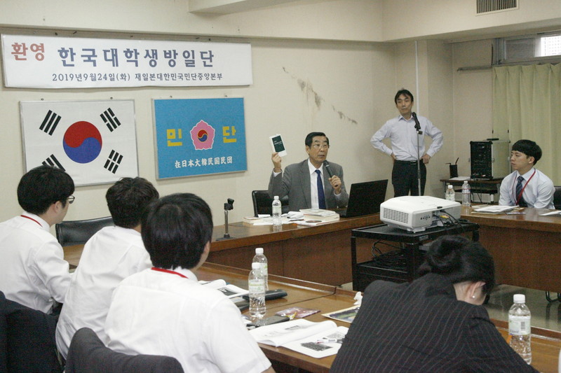 韓国から28人民団初訪問…30年間継続中  韓国外交部招聘の韓国大学生訪日団(沈珪善団長)が24日、東京・港区の民団中央本部を初訪問した。一行は韓国全土から選抜された28人。民団からは金利中副団長が歓迎のあいさつに立ち、鄭夢周副団長が「在日同胞社会が見る韓日・日韓関係に対して」と題して講演した。