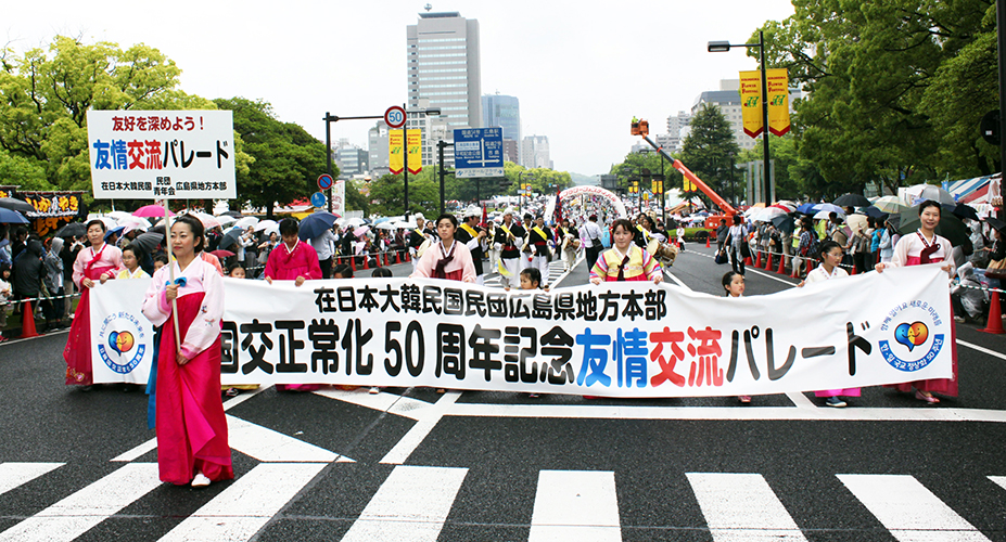 【広島】広島フラワーフェスティバル(FF)の開幕を告げる「花の総合パレード」に、民団広島本部(沈勝義団長)が200人で参加。朝鮮王朝の王室行列を再現し、「アイデア賞」を獲得した。 パレードは3日、「とどけよう 平和の花 はじける笑顔」をテーマに87団体が参加。民団は46番目に登場し、「韓日国交正常化50周年記念友情交流パレード」の横断幕...
