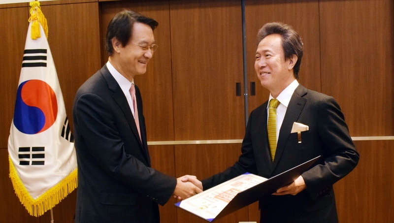 毎年「世界韓人の日」を記念して授与される今年度の大使館管轄地域の有功同胞褒賞伝授式が14日、東京・南麻布の駐日韓国大使館で開催され、受賞者8人に李洙勲駐日大使から政府褒賞が伝授された。 李大使は「受賞者の方々は、いろいろな同胞団体と年齢、性別を代表する人士として、同胞社会が一層和合して、発展するために寄与することを期待する」...