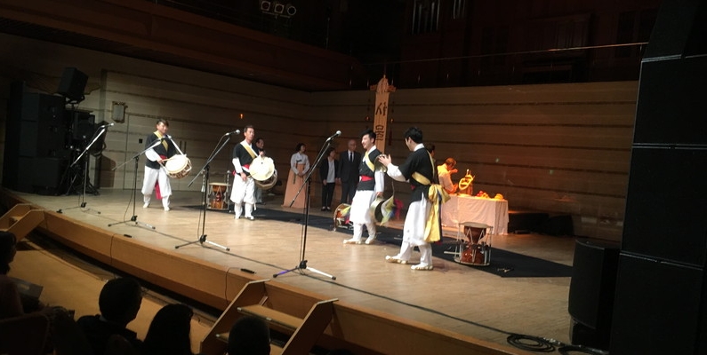 静岡市会場に市民600人招待 【静岡】忠清南道と静岡県の友好協定締結5周年を祝う金徳洙サムルノリ公演が7日、朝鮮通信使とゆかりの深い静岡市内の静岡音楽館AOIであった。駐横浜総領事館が、静岡県、忠清南道、民団静岡本部と共催した。会場は招待客600人で満席となった。 開会に先立っ...