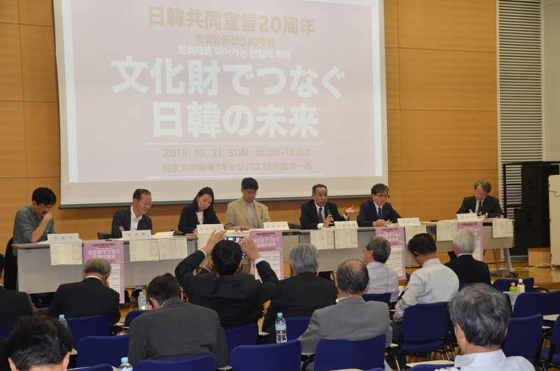 李成市座長(右)が進行役を務めた総合討論(東大駒場) 日本にある韓半島由来の文化財を切り口として韓日関係を再照射しようとする双方専門家によるシンポジウム「文化財でつなぐ韓日の未来」が21日、東大駒場キャンパス(東京・目黒区)であった。韓日パートナーシップ宣言20周...