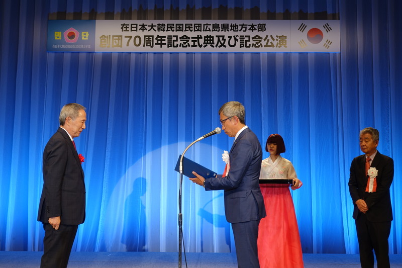 【広島】民団広島本部(李英俊団長)は16日、広島市内のホテルで創団70周年記念式典を開催した。駐広島総領事館から金宣杓総領事、民団中央本部から呉英義、李根茁両副団長と韓賢澤副議長が参席した。 李団長はこの70年間、組織の基盤をつくりあげてきた同胞と日韓親善のために貢献してきた日本人の功労者合わせて55人に感謝状を手渡し「その...