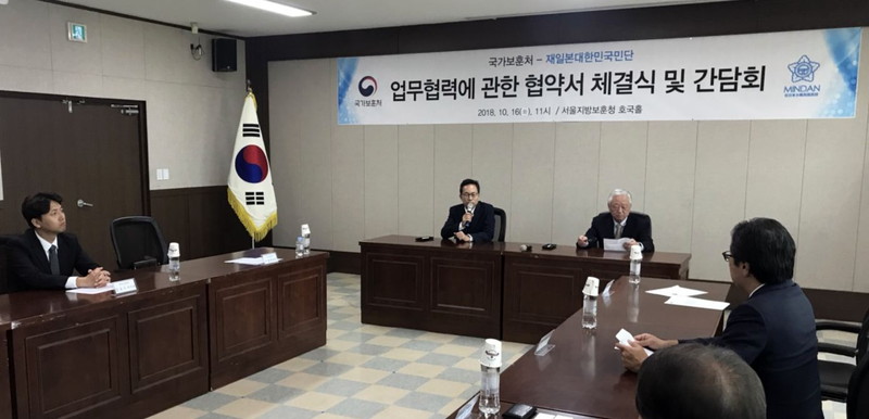 【ソウル】民団中央本部の呂健二団長は16日、ソウルで韓国の国家報勲処(皮宇鎭処長)とのMОU更新のための署名式を行った。式には任泰洙副団長と高漢碩本国事務所長が同席した。 業務提携の内容は、2・8独立宣言など在日同胞社会が保持する歴史的資料の報勲処への提供に協力、民団が在日学徒義勇軍に関する歴史資料を求めた場合、報勲処が応え...