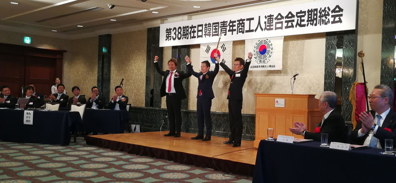 【愛知】在日韓国青年商工人連合会(朴大樹会長)第38期定期総会が6月23日、名古屋市内のホテルで開かれ、任期満了に伴う役員改選で姜光黙会長(前改革担当副会長、愛知)=写真中央=が選出された。 歴代会長の一人である民団中央本部の呂健二団長は来賓あいさつで「皆さんのアボジの世代に民団があったから...