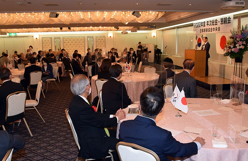 日韓親善協会中央会(河村建夫会長)の2022年度年次総会・懇親会が5月27日、都内のホテルで開催された。全国の日韓親善協会の代表役員と理事ら約50人が参席した。新型コロナウイルスの関係でこの2年間は書面決議に代えたが、対面式の総会は3年ぶりだ。総会と懇親会では韓国の政権交代にあわせ、コロナ禍で制限されていた韓日渡航の緩和によって...