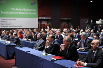 世界的企業の最高経営責任者(CEO)約120人が出席した20カ国・地域(G20)ビジネスサミットが10、11の両日、ソウルで開かれ、民間の視点で各国政府に対する政策提言を盛り込んだ共同声明を採択した。 主な内容は、▽保護貿易主義の撤廃▽資本と投資資本の自由な取引▽金融規制の透明性向上▽青年失業の解消▽再生可能エネルギーの普及などで、持続可能で均衡あ...