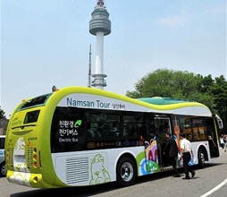 ソウル市、韓国ファイバー、現代重工業が共同開発した電気バスが24日、ソウル南山循環路線区間でテスト運行された。電気バスは20分ほどで急速充電ができ、1回の充電で120㌔の走行が可能。ソウル市は最初にこのバスを南山3循環路線で普及させ、11月から正式運行する予定。(2010.6.30 民団新聞)