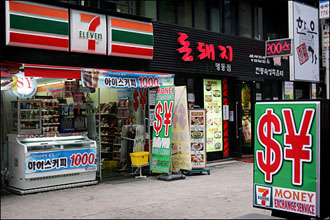 ソウルの街角でも数多くみかけられるコンビニエンスストア。観光客も気軽に立ち寄れて便利だが、噂によると最近のコンビニ、ますます進化しているとか。繁華街・明洞にある「セブンイレブン」では外貨両替サービスを行っている。韓国のコンビニで唯一というこのサービス、韓国銀行から認定を受けている。しかも空港やホテルより「レート」がいいとのこと。 (2009.7.1 ...