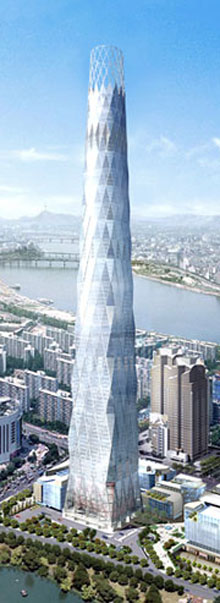 韓国政府は3月31日、官民合同の行政協議調整委員会を開き、112階建ての超高層ビル、第2ロッテワールド(555㍍)の建設を許可することを最終的に決めた。事業費は約1兆7000億ウォンで、2万3000人の雇用創出効果が期待されている。また、ロッテは環境に配慮し、屋上に垂直型風力発電機、外壁に太陽電池などを設置することを明らかにした。 (2009.4.1...