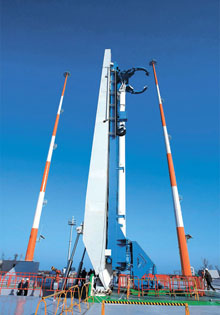 全羅南道高興郡の羅老島宇宙航空センターで3日、来年に打ち上げ予定の科学技術衛星ロケットおよび発射台が公開された。韓国初の小型衛星KSLV‐1が搭載されたロケットの打ち上げは来年4〜6月ごろ。 (2008.12.10 民団新聞)