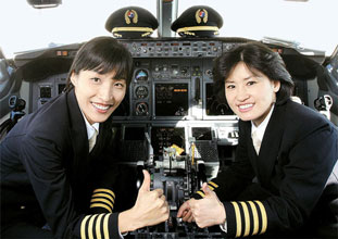 ◆初の民間機女性機長2人が誕生 韓国で初めて民間機の女性機長が誕生した。大韓航空に操縦士として勤務する副機長のシン・スジンさん(39歳)とホン・スインさん(36歳)の2人=写真。キャリア11年の両人は、飛行時間4000時間以上、着陸回数350回以上の経験がある。今後、日本や東南アジア路線のボーイング737型機を操縦する予定。 (2...