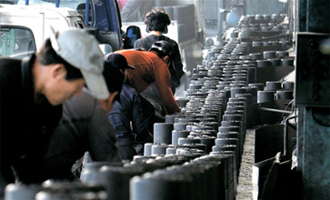 景気が悪化すると、よく売れるのが練炭。わずか1200ウォンの練炭があれば、冬も暖かく過ごすことができる。業界によると、今年の練炭用石炭需要は昨年に比べて10%以上多い230万〜240万㌧に達する見込みで、過去最低だった2002年と比べてほぼ2倍だ。 (2008.11.26 民団新聞)