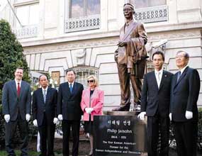 独立運動家・徐載弼博士(1864〜1951年)の銅像が、米ワシントンの韓国総領事館前に建立された。除幕式が行われた6日を「徐載弼の日」に制定した。徐博士は1890年に韓国人として初めて米国の市民権を得た後、「独立新聞」を発刊し、第2次世界大戦では米軍の徴兵検査医務官として奉仕した功労が認められ、米議会から功労勲章を受けた。 (2008.5.14 民団...