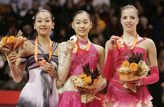 フィギュアスケートのグランプリ(GP)ファイナル最終日は15日、イタリア・トリノのパラベラ競技場で各種目のフリーが行われ、女子の金ヨナ(17・軍浦スリ高)が合計196・83点で2位の浅田真央(合計191・59点)をおさえ、昨年に続き優勝した。 (2007.12.20 民団新聞)