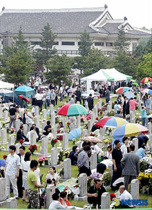 6月6日は顕忠日(国のために命を捧げた愛国烈士と国軍将兵の魂を慰め、その忠節を追悼するための記念日)。ソウル市銅雀洞の国立ソウル顕忠園(国立墓地)には、早朝から多くの市民が墓参りに訪れた。 (2007.6.13 民団新聞)