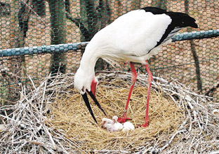 絶滅危機種で天然記念物(199号)に指定されているコウノトリの韓国復元センターでこのほど、3つがいが産んだ13個の卵から3羽が孵化(ふか)した。コウノトリは世界で約2500羽確認されているが、韓国では1971年に忠清北道の陰城で発見されたつがいが最後。 (2007.4.4 民団新聞)