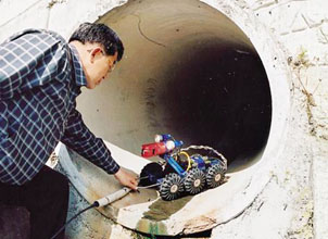 ソウル市内でハンドバッグを奪った窃盗犯が直径70㌢ほどの下水道管に逃げ込み、姿を隠した。困った警官らは下水処理課に配管図を依頼すると、ロボットも一緒に届けてくれた。長さ60㌢、高さ40㌢のロボットはカメラを搭載し、6つのタイヤで360度回転ができる。早速、管内を検索させると、1時間ほどで犯人を見つけ、「御用!」となった。 (2007.2.7 民団...