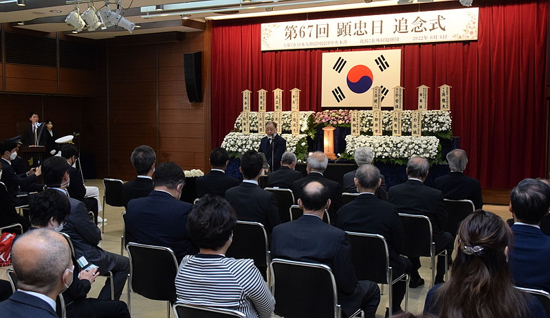 第67回顕忠日追念式が6日、東京都港区の韓国中央会館で営まれた。今年も規模を縮小、在日学徒義勇軍同志会の遺家族、公館と民団および傘下団体代表ら約80人が参列した。 追念式で呂団長は「ロシアのウクライナ侵攻によって世界が憂慮している。韓半島に再び戦争が起きてはならない」としながら、「自由民主主義と在日同胞の生活を守り祖国の発展...