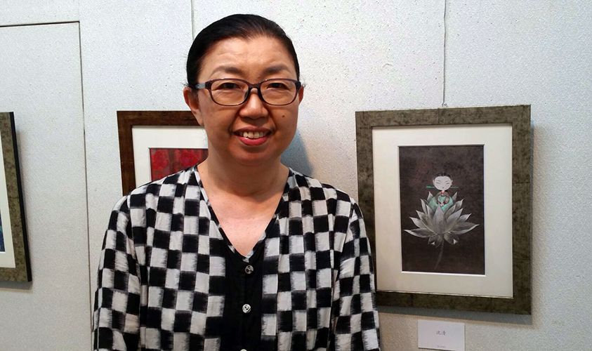韓国民画作家、池貴巳子さんの絵画展「勿忘草」が9日から20日まで、鶴見画廊(横浜市鶴見区)で開かれた。 絵画展は1年に1回開催され、今年で20年目を迎えた。 女性の「顔」シリーズ、「花とアガシ」シリーズ、「虎と童女」「チェッコリ」など、大小さまざまな作品40点以上を展示した。なかでも、蓮から生まれた女の子を描...