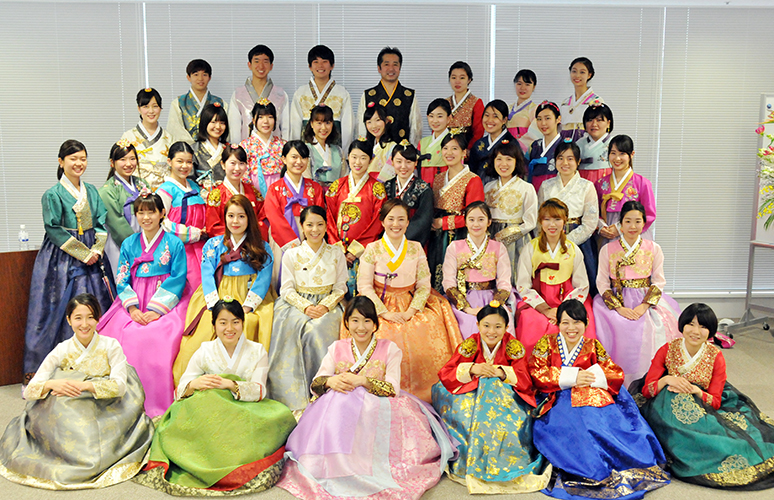 一般社団法人韓服普及協会(李香順代表理事)は、6月1日に韓国文化院(東京・新宿区)で開く「第2回大学生による韓国伝統衣装『韓服』を来てみよう体験」の参加者を4月18日から受けつける。韓服に興味はあるが、着る機会がない日本の大学生のために企画。昨年11月の第1回目には12大学などから31人が参加。李さんらの指導を受けながら、各自、綺麗に韓服を着こなした。