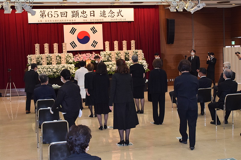 第65回顕忠日追念式が6日、港区の韓国中央会館で営まれた。新型コロナウイルス感染予防の関係で規模を縮小、戦没者遺家族、公館と民団および傘下団体代表ら約60人が参列した。民団中央本部としては2月20日の第74回定期中央委員会以降、107日ぶり初の公式行事となった。 大ホール全面積を活用し、1メートル以上の「社会的距離」を離して...