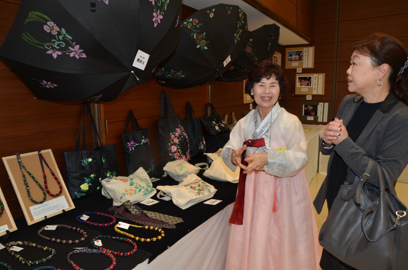 婦人会東京本部(李正子会長)の「第38回国際文化作品展示会」が23、24の両日、東京・港区の韓国中央会館8階大ホールで開かれた。婦人会各支部などから書や絵、工芸品などアイデアあふれる力作がそろった。 渋谷支部の張美砂江さんは外資系のビジネスマンだった父親が遺したシルクのネクタイを小さくビーズ風に加工してネックレスに仕上げた。...
