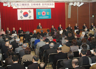 選挙人制度も奏功 民団の将来に関心高く 新3機関長を選出する第49回定期中央大会(24日)に向けた合同演説会は、4日の九州地方協議会を皮切りに、中国・四国地協(5日)、近畿地協(11日)、中北地協(12日)と3分の2を消化、選挙戦は終盤に入った。各合同演説会の参加者は前回の規模を大幅に上回っており、中央委員・代議員以外に865人の選挙人...