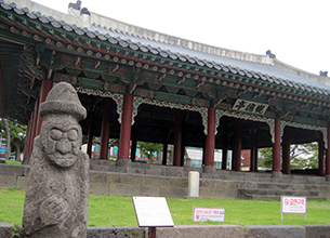 済州市の一角に、人々が待ち合わせに使うなどメルクマールになっている古い建物がある。観徳亭。1448年、朝鮮王朝第4代王の世宗の御世に、兵士の訓練のために建てられた。済州島に残る最古の木造建築物でもある。 観徳亭はもともと島を治める官庁機関、済州牧官衙の一部を占めていた。この牧官衙が近年復元され観光名所になっている。門をくぐって中に入ると...