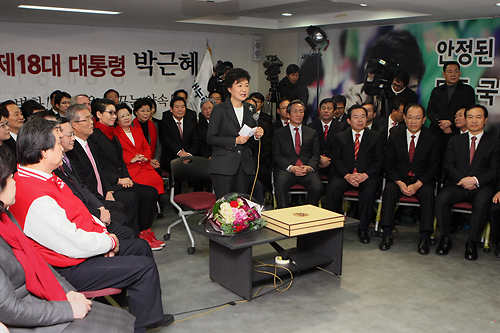 【ソウル】朴槿惠大統領当選人は20日、セヌリ党本部で発表した国民へのあいさつで、「過去半世紀の間、極限分裂と葛藤を生じさせてきた歴史を和解と大蕩平策で断ち切るように努力する」と表明、「すべての地域、性別、世代の人をまんべんなく登用、大韓民国の隠れた能力を最大限引き上げ、国民一人ひとりの幸福と100%大韓民国を作ること...