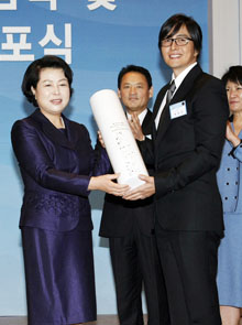 文化勲章も受章 「韓国訪問の年」宣布式が14日、ソウルのロッテホテルで行われ、俳優のペ・ヨンジュンさんが金潤玉大統領夫人から広報大使に委嘱された。任期は2010年から3年間。 ペさんは18日、清州で開催された「文化の日」記念行事で文化勲章を受章した。ドラマ「冬のソナタ」などで韓流ブームに寄与した功労が認められたもの。日本から50...