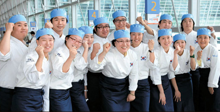 夏休みを利用して世界に韓国料理のすばらしさをアピールする「青年大長今ボランティア団」が15日、出発した。1チーム14〜15人、5チームの計74人で、全国各地から集まった調理学科・食品栄養学科の学生たちがインドや中国、トルコ、タイ、ハンガリーなどを順次訪問する。 (2008.7.30 民団新聞)