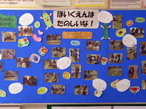 [ 各国の様子を知らせる北上飯田保育園のボード