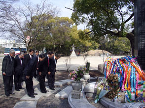 韓国人原爆犠牲者慰霊碑に献花 3機関長立候補者
