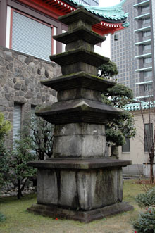 [ 大倉集古館裏庭に置かれた「利川五層石塔」 ]