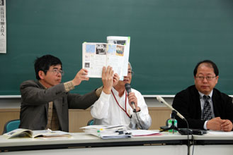 [ 自由社版教科書の記述内容を批判する各団体代表 ]
