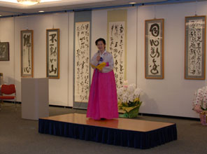 創星書道会会長・金昇煥さんの作品、松原弘子さん(水曜会)の油絵のほか水彩画、彫刻、ビーズ工芸、エッチングなど約60点が展示された。在日同胞も金文子さんがアートフラワー、呉大順さんが書を出品した。昨年は4月の東京展に続き9月には韓国でも開催し、両国作家の交流の場となっている。