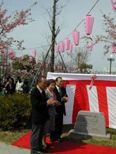 公園内の桜の苗木は100本。10年前、地元の崔中卿さん(67)=大阪韓国商工会議所特別顧問=が公園整備の一環として寄贈した。桜の苗木は当時2㍍足らずだったがいまは3㍍ほどに成長、見ごろを迎えたことから崔さんら地元住民が企画した。