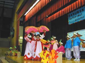 胸を張ってプンムル披露 北鶴橋小民族学級発表会(03.12.10)
