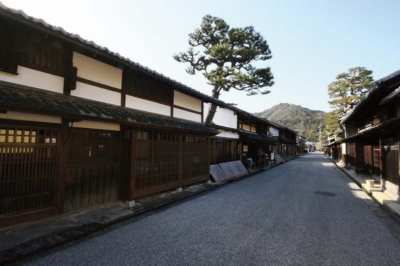 新町通りには、江戸に店を構えた近江商人たちの本宅が多い。その証は客門を構え、「見越しの松」と称する松の枝が板塀から延びていることであった。