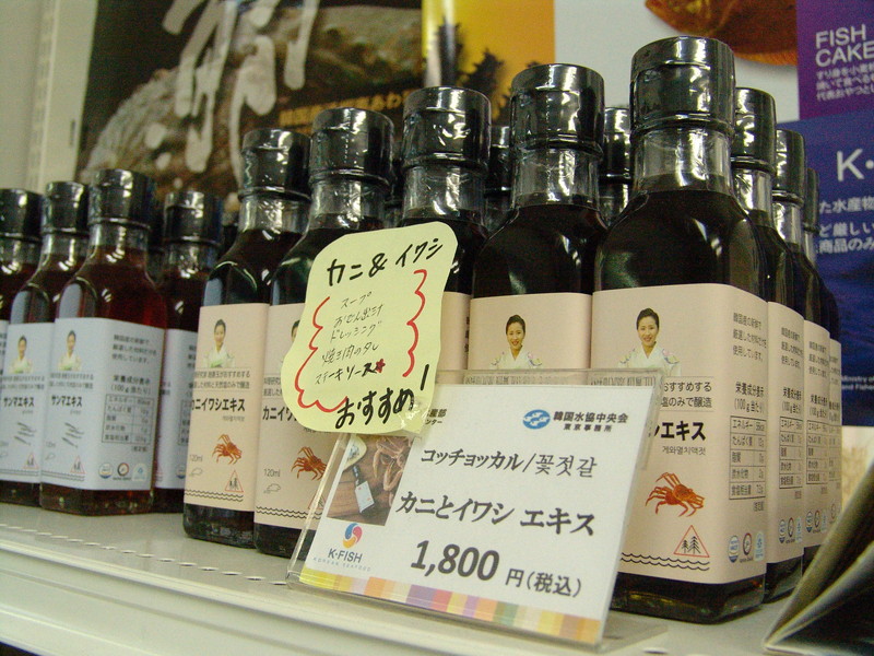 新鮮なアワビ、つぶ貝など約30種類を扱う。なかでもお勧めは3種類の自然発酵エキス「コッチョッカル(花の塩から)」。厳選した材料と天然の天日塩だけを使い、長時間かけて自然発酵させた。発酵したカビが壺の中で花のような模様を描くことからこう名づけられた。