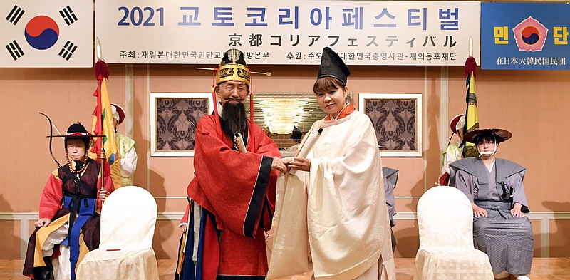 【京都】民団京都本部(金政弘団長)は19日、京都市内のホテルで今年で10回目となる「京都コリアフェスティバル」(孔信根実行委委員長)を縮小開催した。新型コロナウイルスの感染症予防のため昨年に続きメーンとなる朝鮮通信使再現行列を中止し、入場者も200人に限定した。