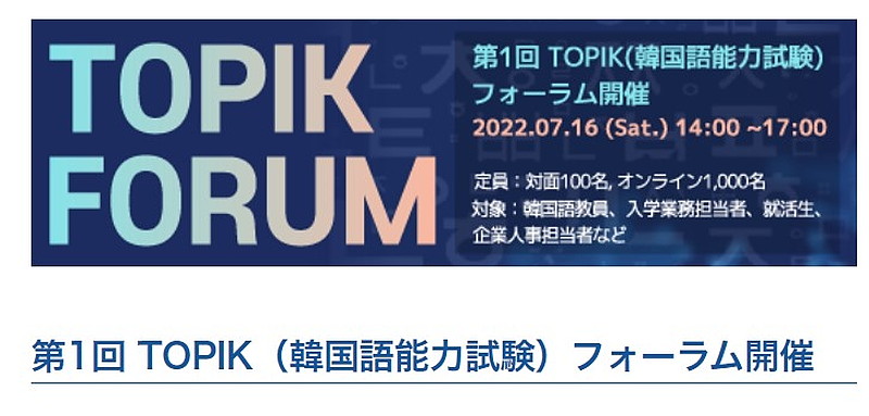 「TOPIK(韓国語能力試験)」をテーマとした第1回フォーラムが16日、東京・豊島区の立教大学太刀川記念館で開かれる。主催は日本で同試験を主管している公益財団法人韓国教育財団と立教大学外国語センター。