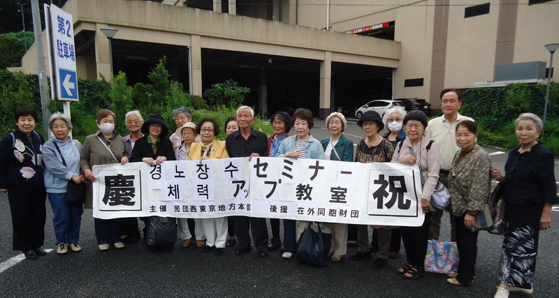 民団西東京本部(崔貫一団長)は21日、75歳以上の高齢者を八王子市内の健康ランドに招待した。名称は「長寿セミナー 体力アップ教室」。婦人層を中心に40人余りが参加した。