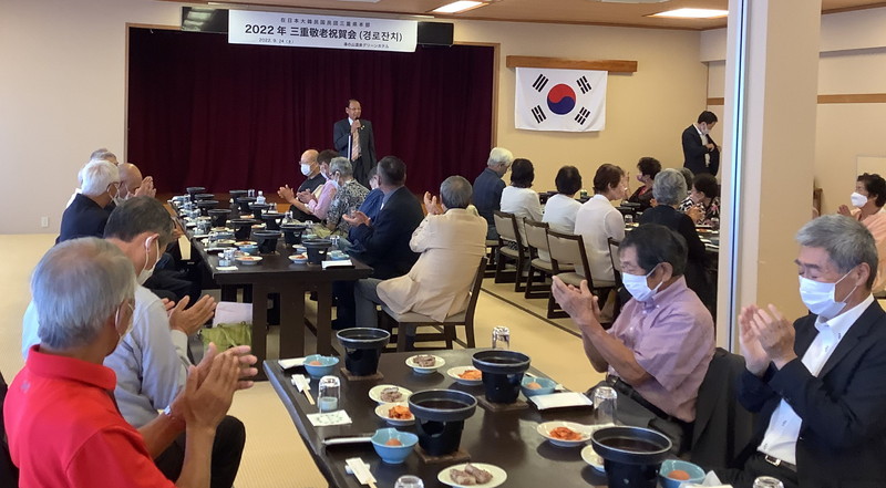 【三重】民団三重本部(殷慶基団長)の敬老祝賀会は24日、四日市市内のホテルで行われ、ハラボジ、ハルモニら約50人が元気な姿で参加した。