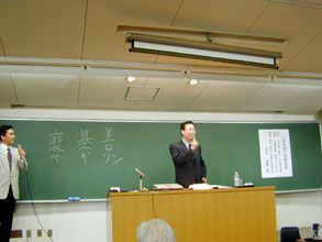 この後、在日同胞医師で韓国・川崎病研究所の自然所長が「玄界灘を越え国際人として生きて」と題して講演した。国会議員は自然所長が講演するとの話を聞き、東京に立ち寄った後で関西大学を訪れたもの。